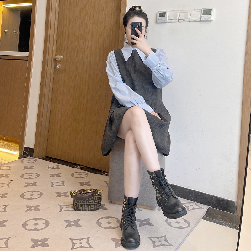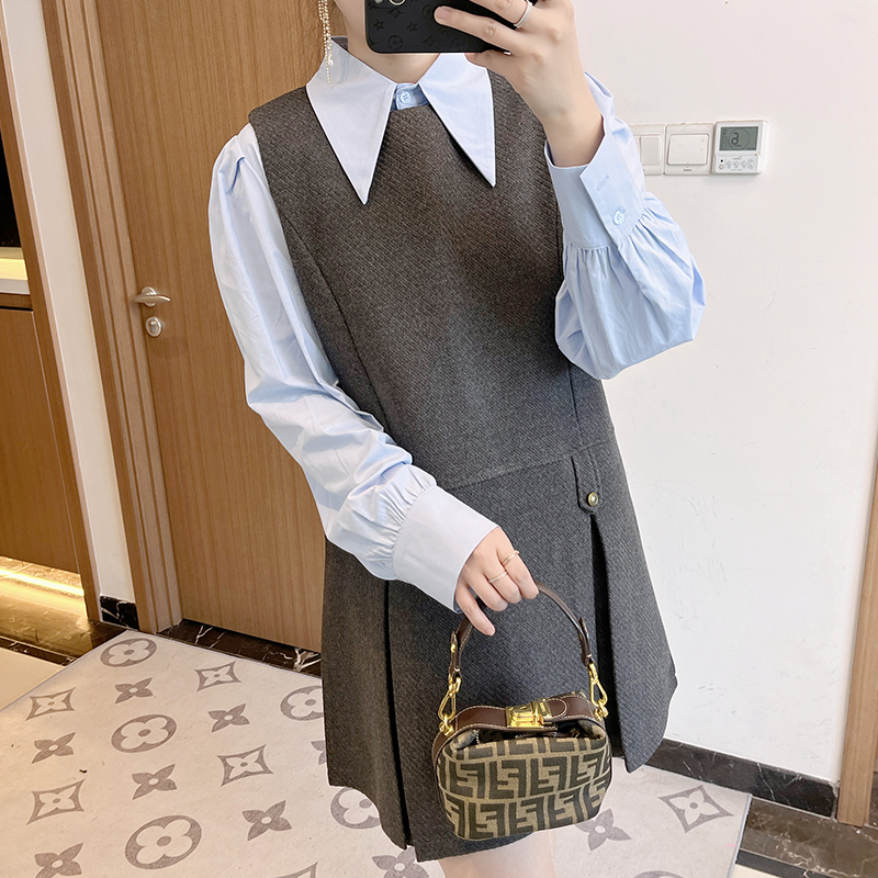 背心连衣裙秋冬穿搭两件套大码 气质套装 2025新款 衬衫 胖mm 女长袖