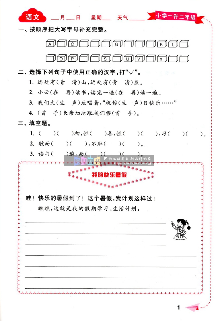 超能学典暑假接力棒语 数综合篇小学1升2年级语文数学英语假期作业本五下六上暑期预习衔接训练升学测试辅导书知识同步练习册