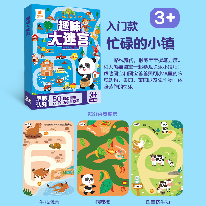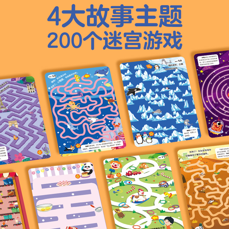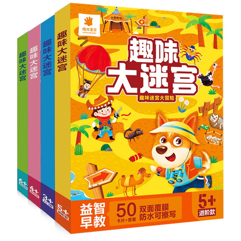 阳光宝贝儿童迷宫书走迷宫大冒险专注力注意力训练智力大挑战左右脑益智游戏书防水可擦宝宝入园能力培养绘本 6岁 趣味大迷宫盒装