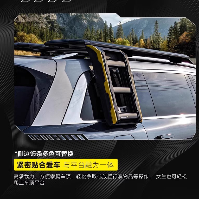 车顶平台折叠侧爬梯帐篷装 M9车顶行李架行李框改装 备箱 问界M7