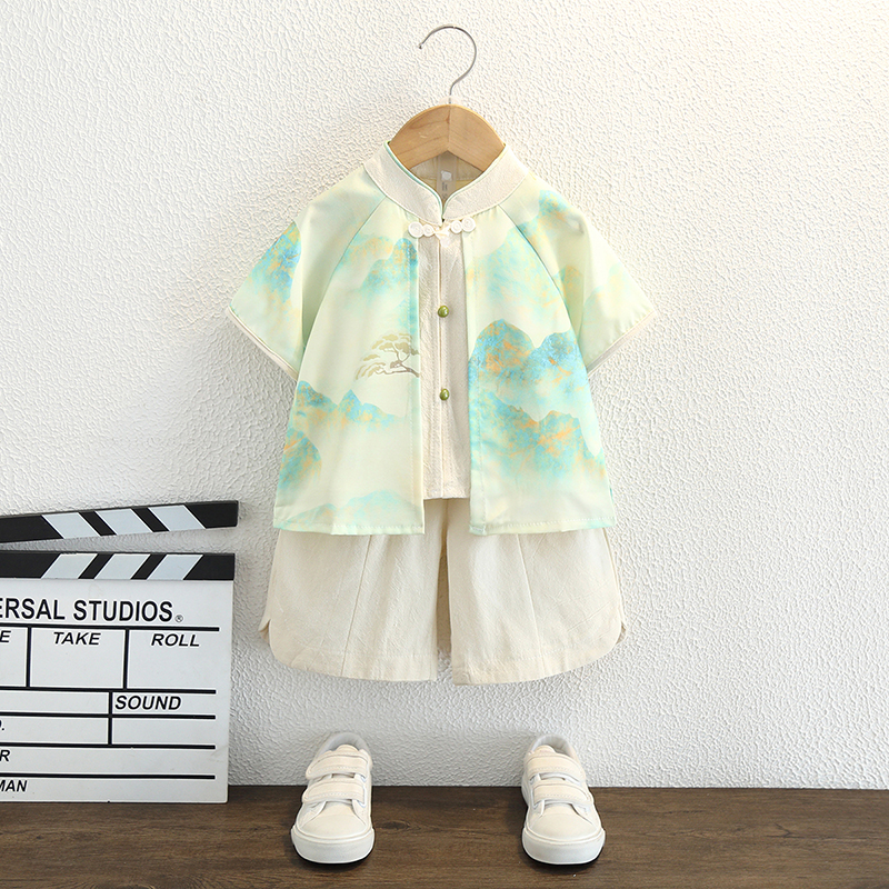 演出服夏小童4岁儿童唐装 汉服男童1夏季 超仙古装 薄款 2中国风3短袖