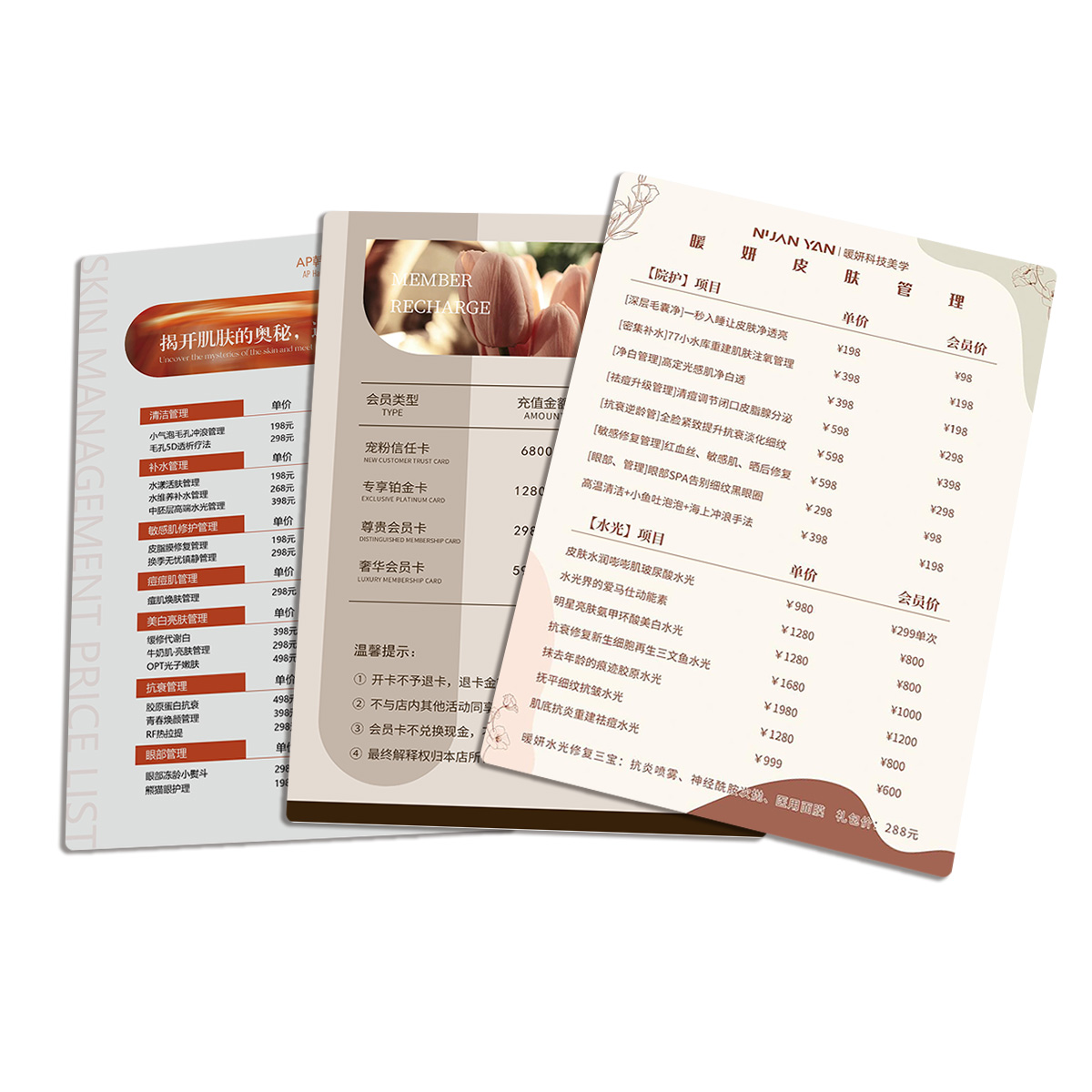 美容院塑封价格表定做PVC皮肤管理项目价目表定制美甲美睫美发价格表设计制作纹绣眉眼唇广告海报宣传画打印