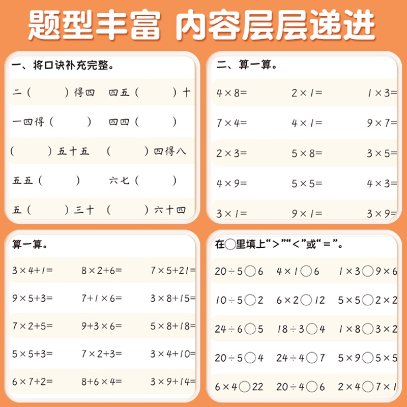 九九乘法口诀表表内除法练习册99二年级上册数学专项训练练习题小学思维训练三年级口算题卡计算题天天练一同步混合应用题课堂运算