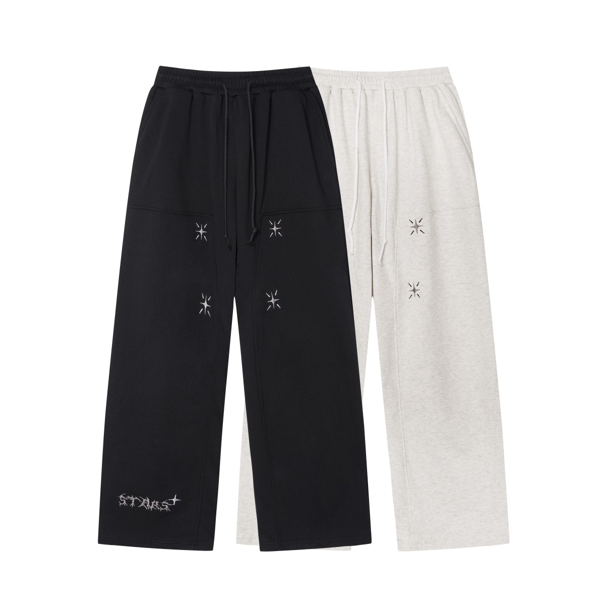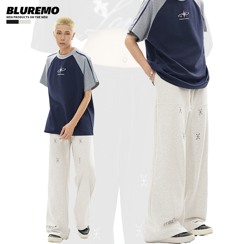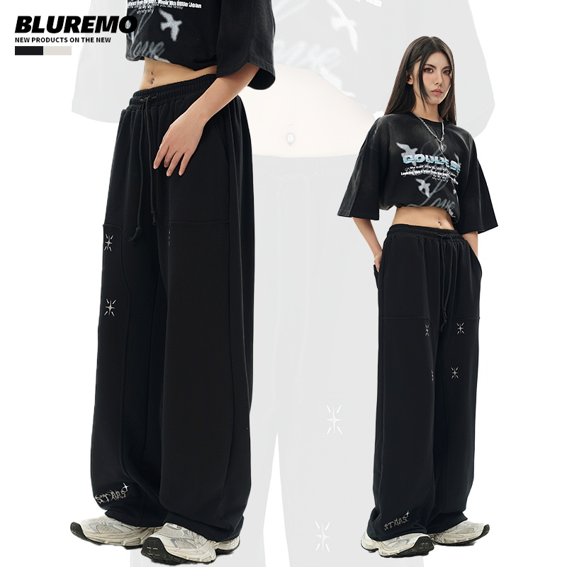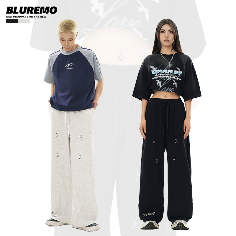 潮流拼接仿钉扣绣花宽松阔腿休闲裤 BLUREMO 模糊情绪2025早秋新款