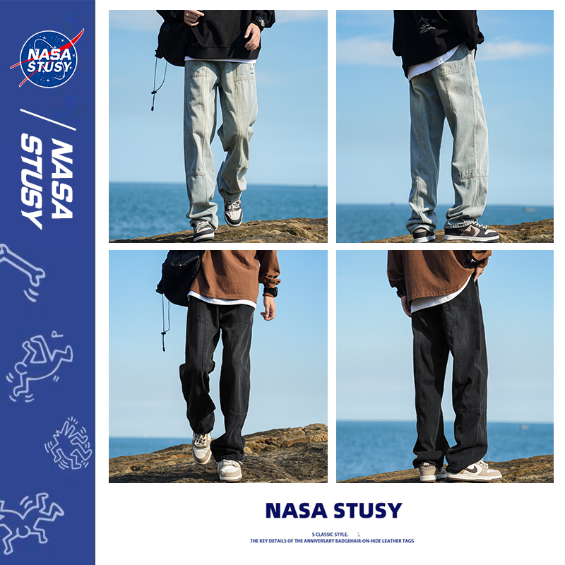 2025新款 高街宽松直筒牛仔裤 春秋装 男款 子 NASA 休闲长裤 STUSY美式