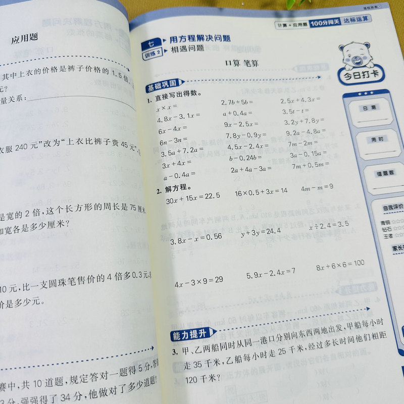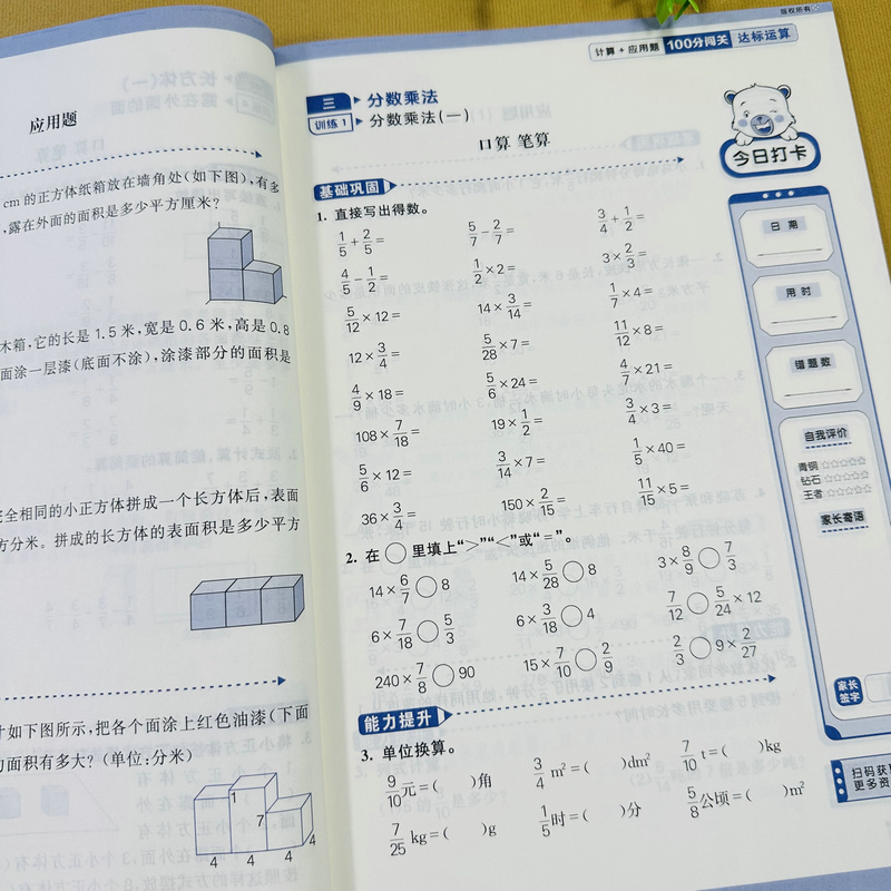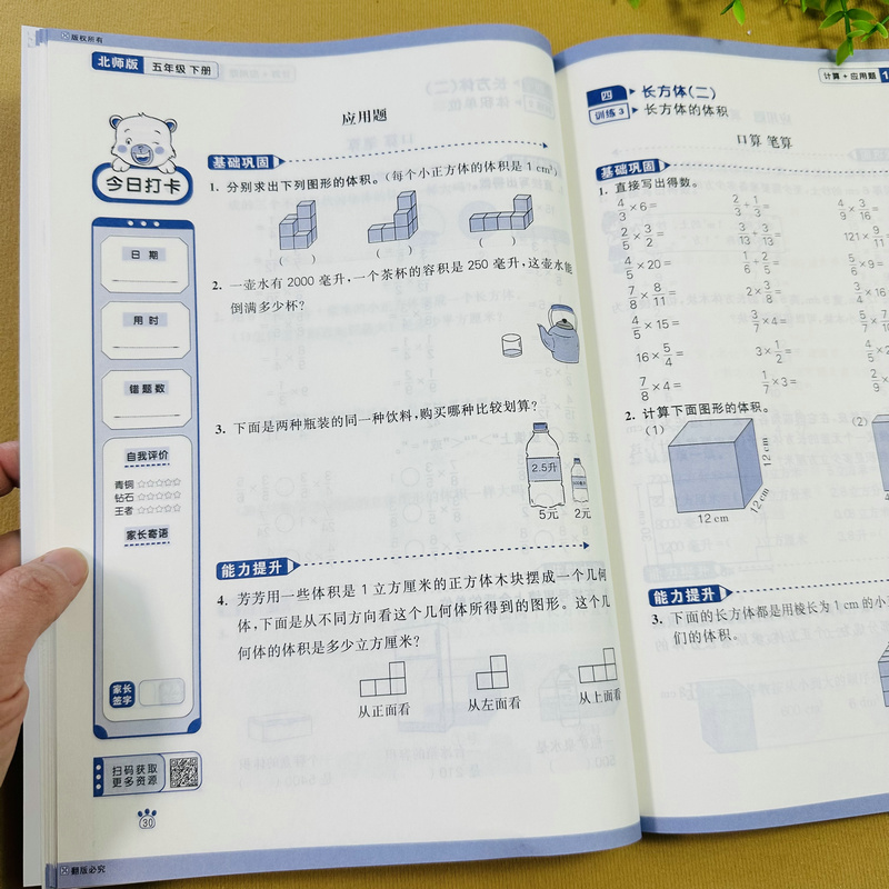 北师大版 小学五年级下册数学练习册计算应用题同步训练口算笔算应用题三合一分数加减法长方体表面积体积分数乘法除法解方程应用题