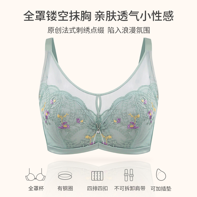 贝佳人新款 显小调整型内衣女BW982218 全罩杯绣花聚拢文胸舒适大码