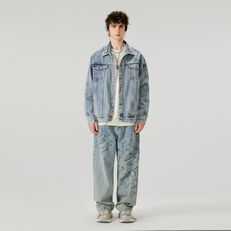 新款 森马夹克男2024秋季 复古牛仔外套宽松潮流 商场同款 森柔牛仔