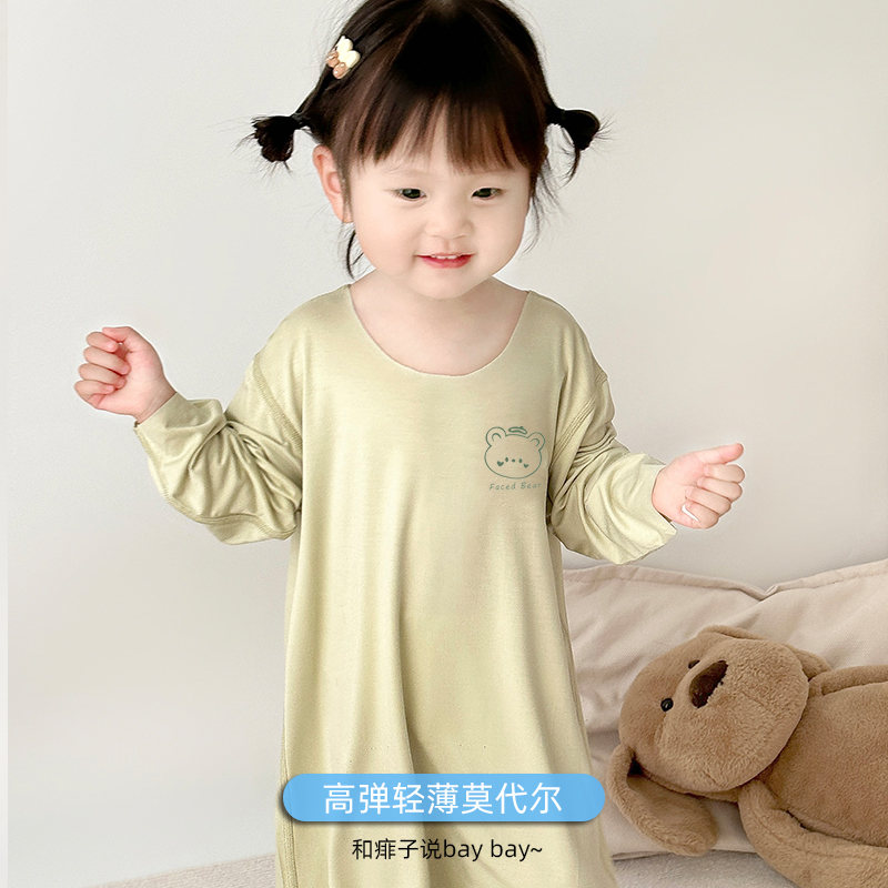 连体衣空调服婴儿睡袍袋秋季 宝宝睡衣春夏薄款 男女儿童莫代尔长袖