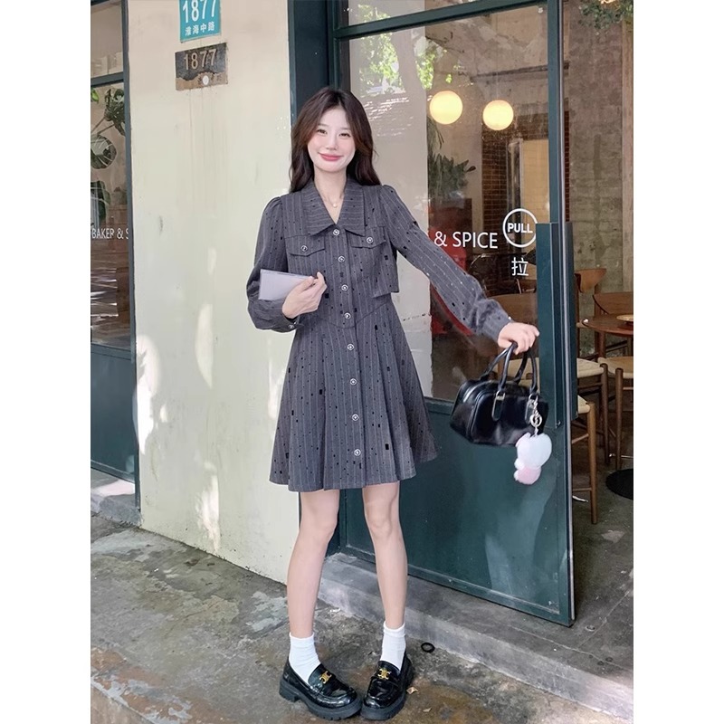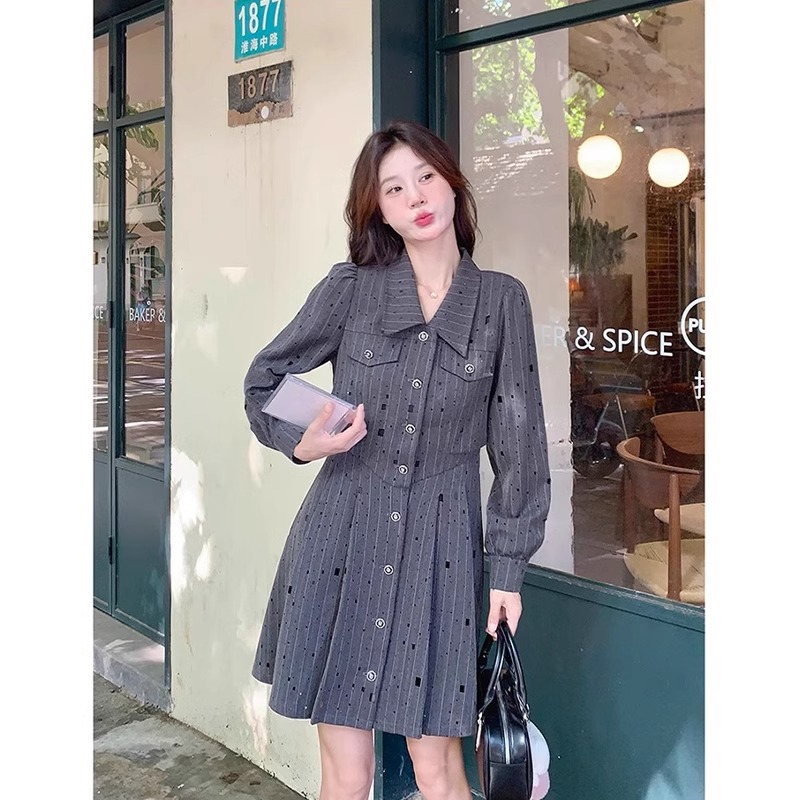 连衣裙女 显瘦气质轻奢大码 灰色氛围感小个子温柔系衬衫 裙春秋新款