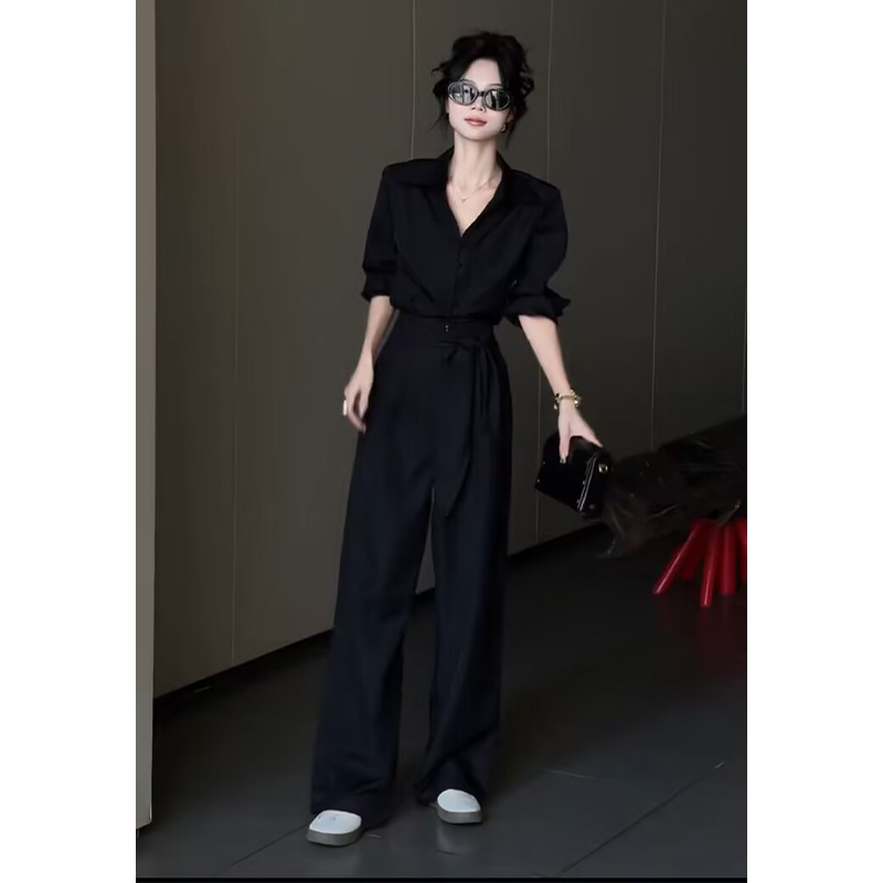 小香风两件套装 时尚 女 休闲裤 早春气质御姐高级感职业黑色显瘦衬衫