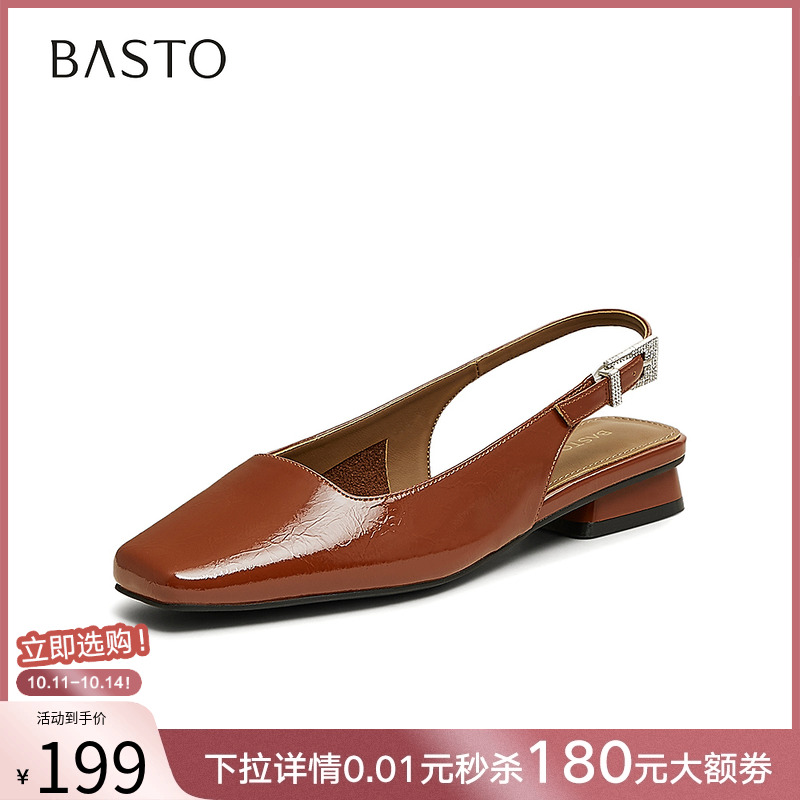 B2001BH5 通勤粗跟方头包头后空女一字带凉鞋 百思图2025夏季 新款