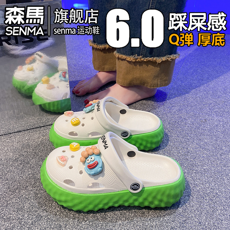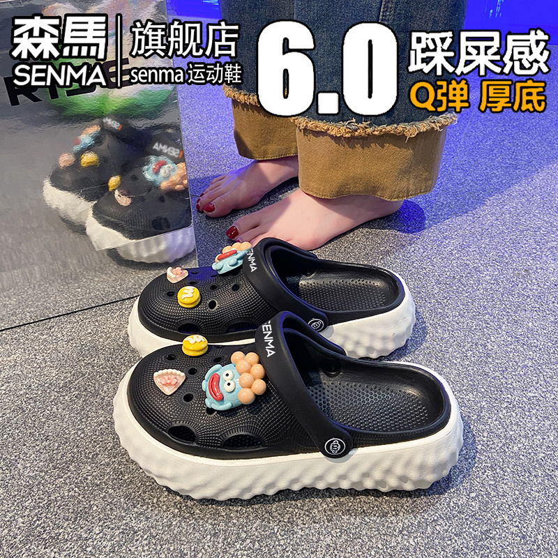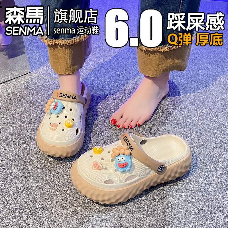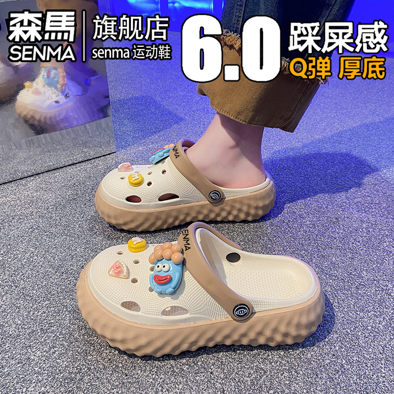 户外海边沙滩洞洞鞋 外穿防滑防臭厚底增高包头拖鞋 女夏季 森马凉鞋