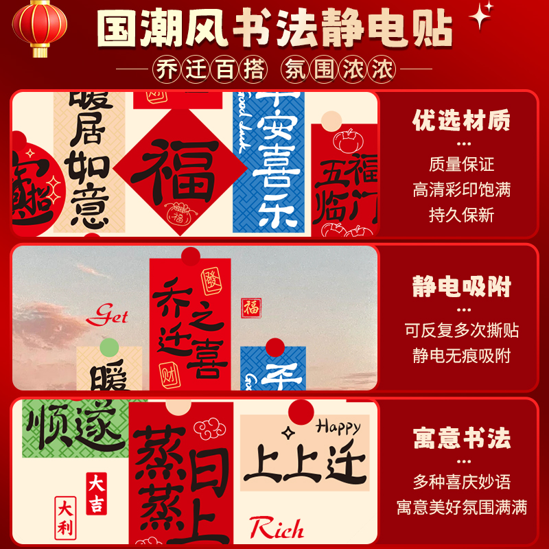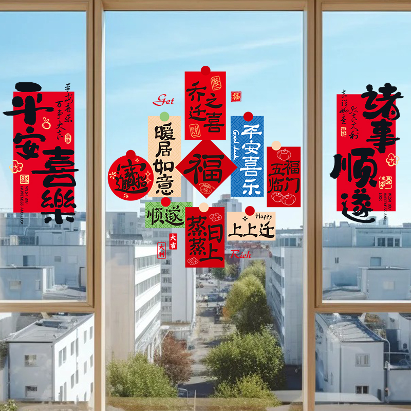 乔迁之喜装 福字玻璃贴剪纸新房入宅新居窗贴 饰窗花静电贴2025新款