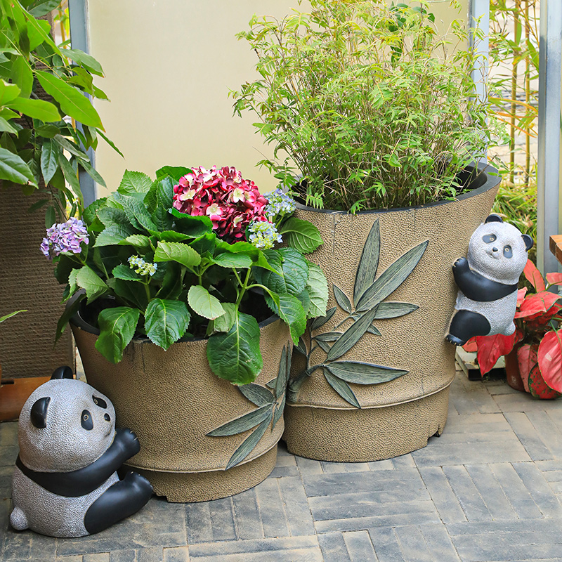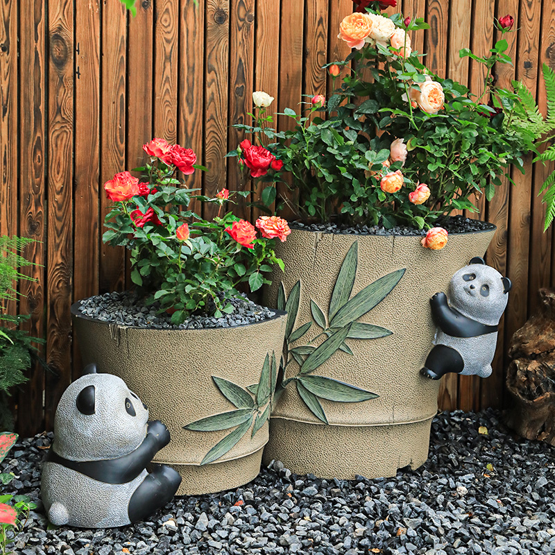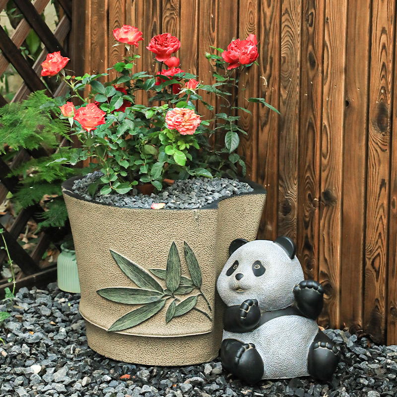 陋石坊庭院花盆摆件中式 饰种养植物盆景 院子花园露台可爱大熊猫装