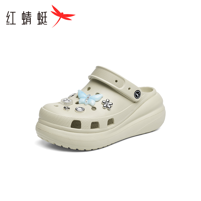 新款 外穿2025夏季 女鞋 凉鞋 红蜻蜓厚底洞洞鞋 增高沙滩两穿拖鞋 女款