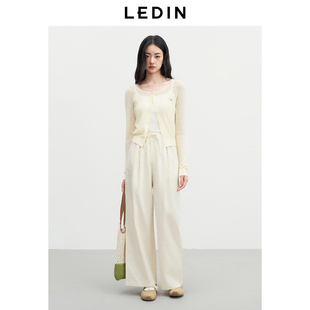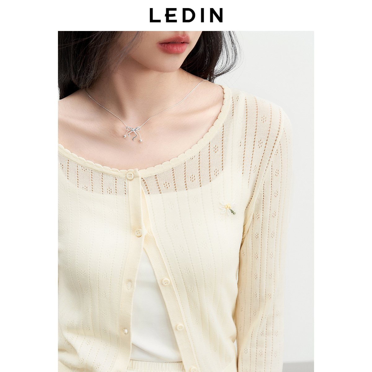 领口花边针织短款 新款 外套 女2025年夏季 乐町精致少女感提花线开衫