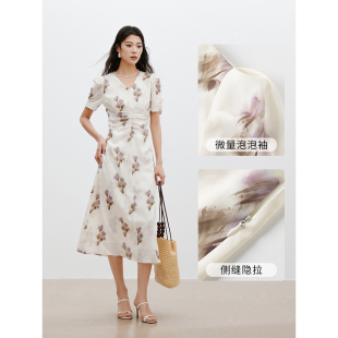 宽松波嬉风设计感碎花连衣裙1272451 法式 HM女装 连衣裙2025秋新款