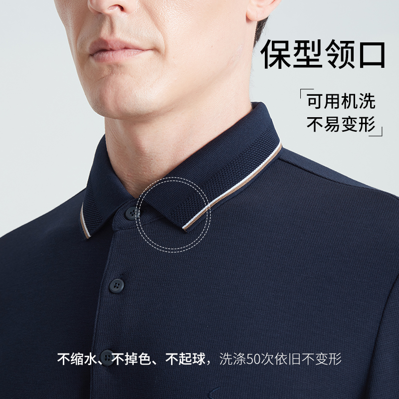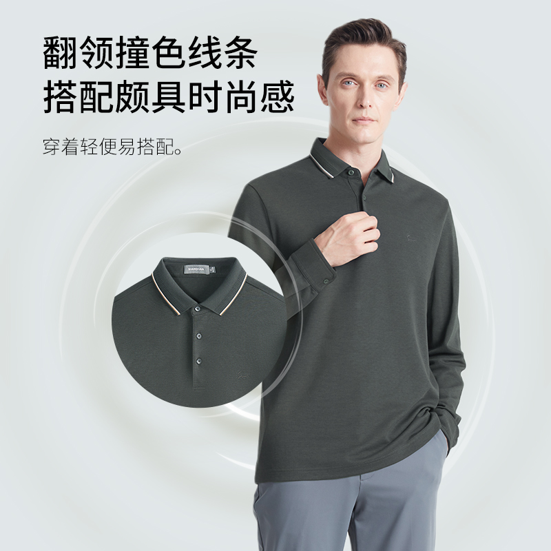 长袖 新款 polo衫 2025春季 纯色翻领中年休闲t恤男 男款 杉杉官方正品