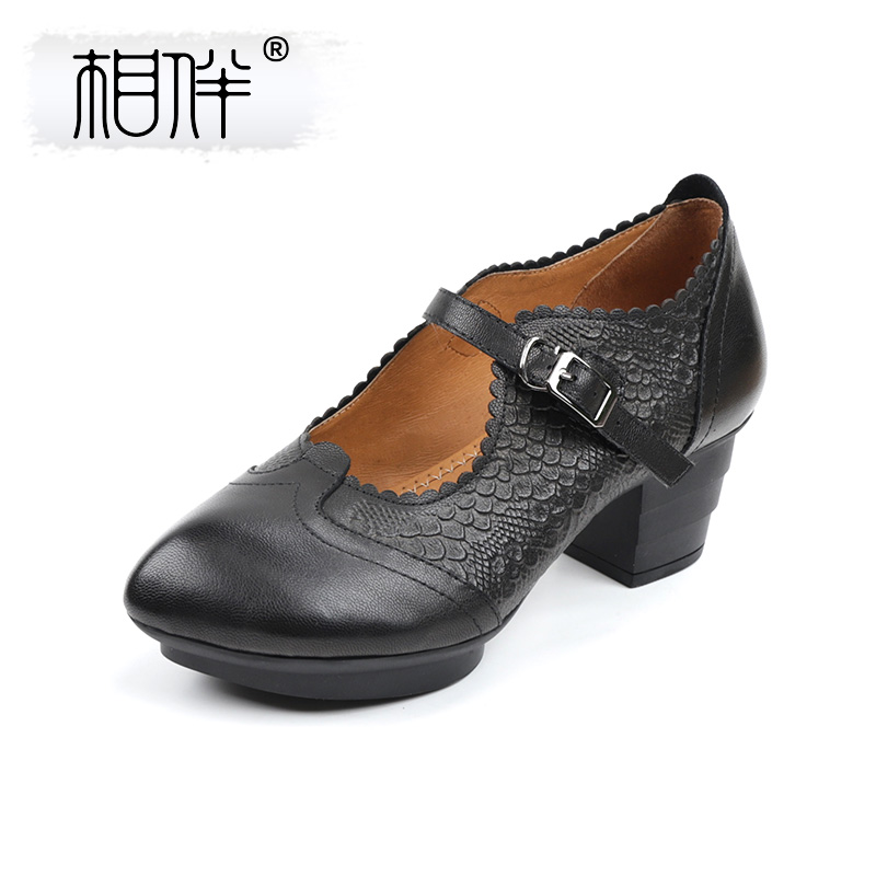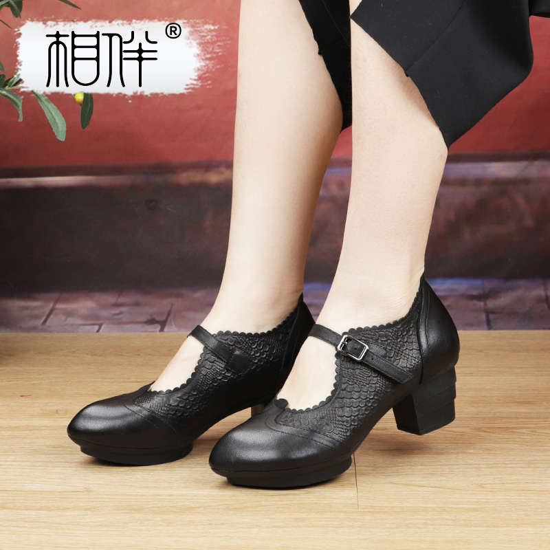 仙女风瓢鞋 秋季 浅口百搭中跟奶奶鞋 大码 真皮单鞋 女鞋 粗跟2025新款