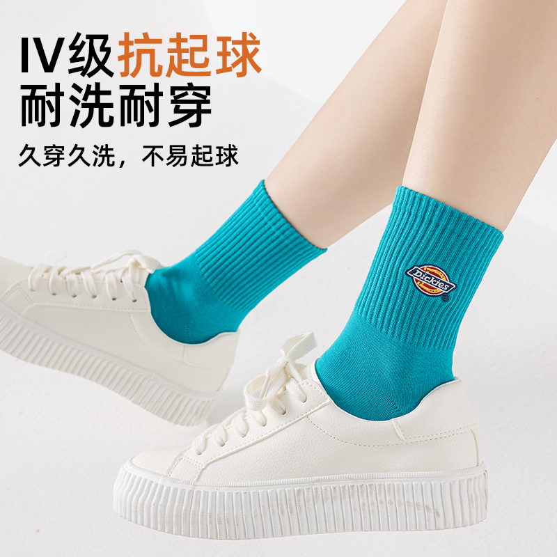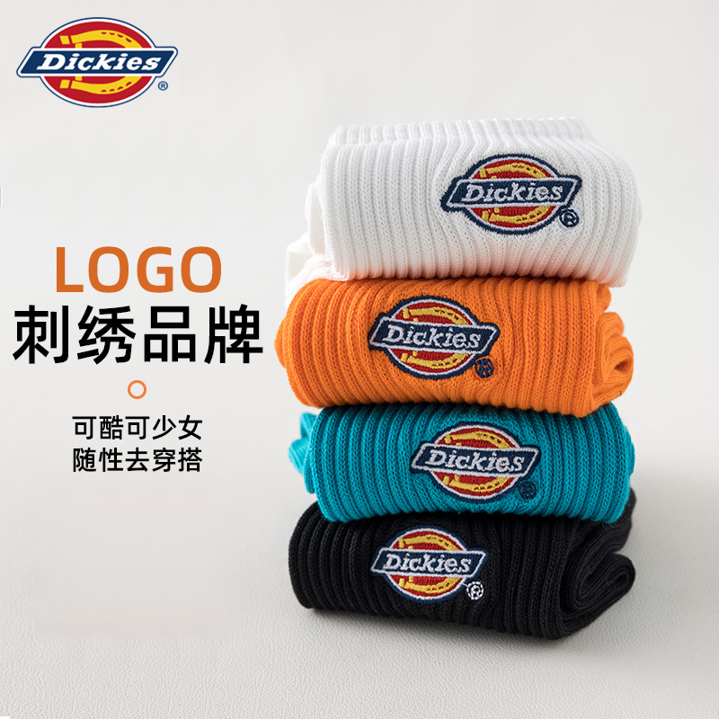 Dickies黑色纯棉袜子男女潮牌青少年学生运动长袜百搭中筒袜男款