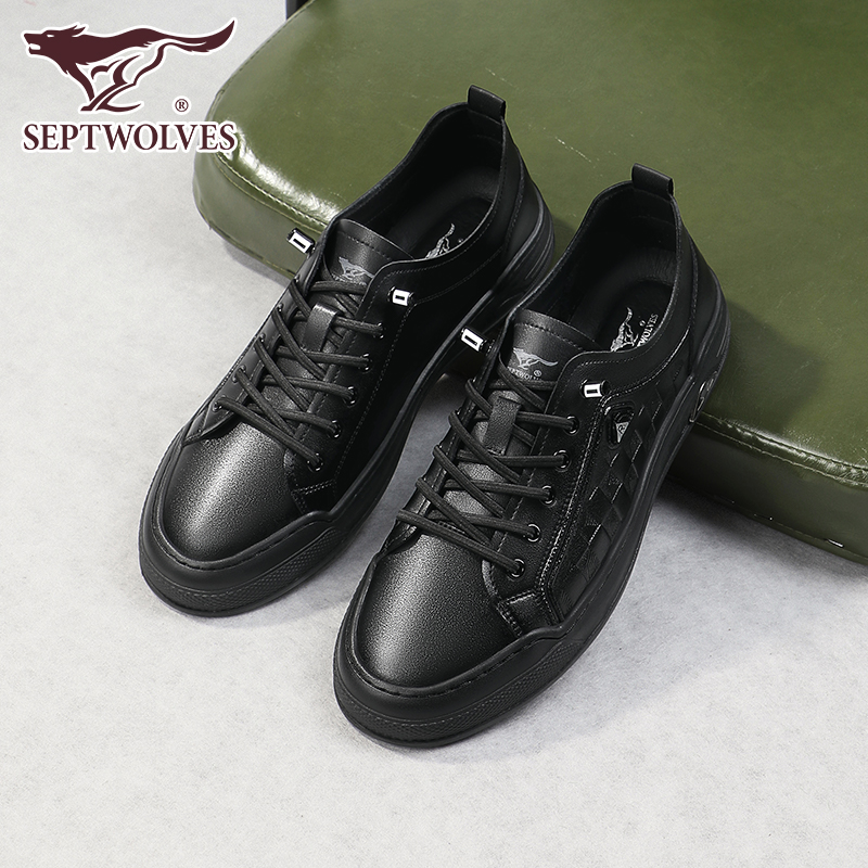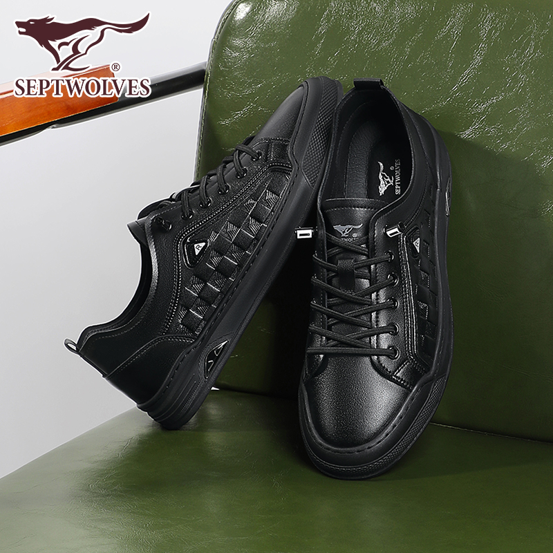 男士 男轻便舒适小众鞋 黑色板鞋 软底休闲皮鞋 子 2025新款 七匹狼男鞋