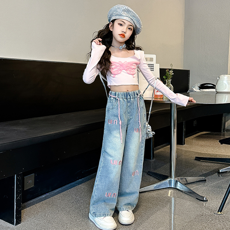 女孩宽松裤 儿童洋气时髦直筒裤 子 春秋2025新款 拉夏贝尔女童牛仔裤