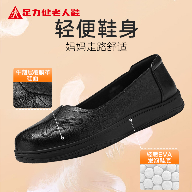 一脚蹬舒适软底中老年防滑女鞋 2025新款 官方旗舰秋季 足力健老人鞋
