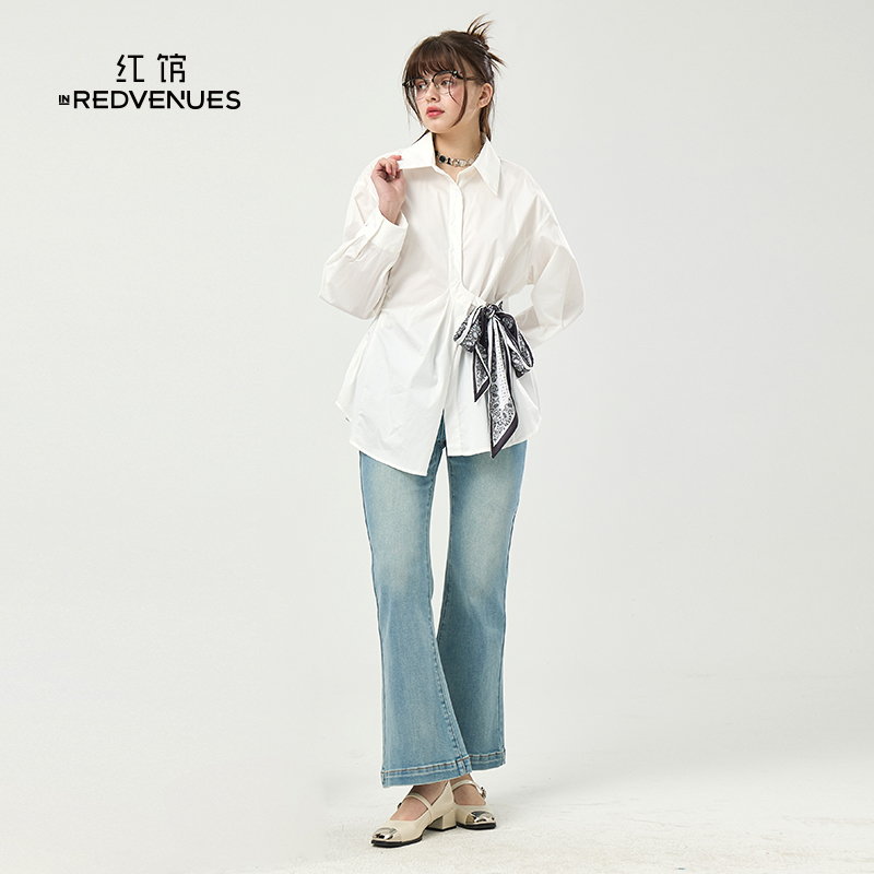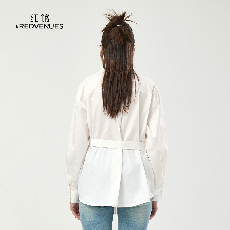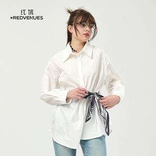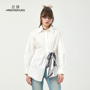 女士衬衫 红馆2025秋新款 收腰衬衣中长款 女法式 气质通勤上衣 白衬衫