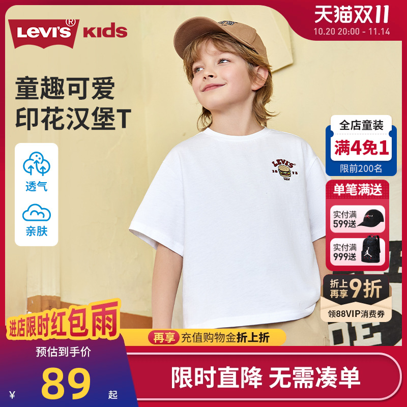 男童短袖 2025夏季 新款 上衣夏装 李维斯童装 儿童半袖 白T 汉堡T恤