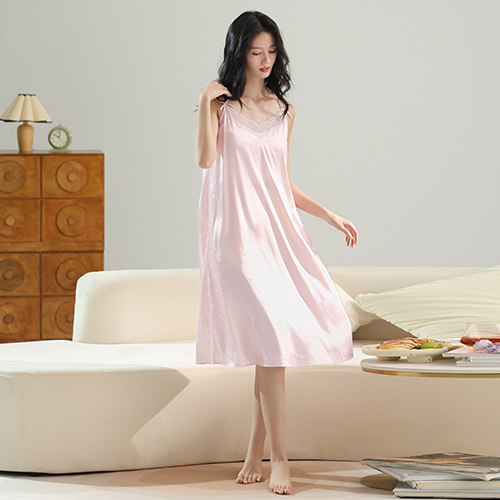 2025新款 性感冰丝睡袍纯欲风高级感蕾丝吊带睡衣 睡裙女春秋夏薄款
