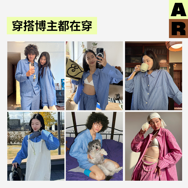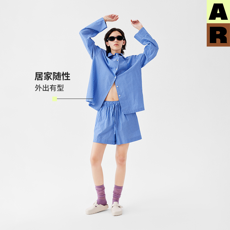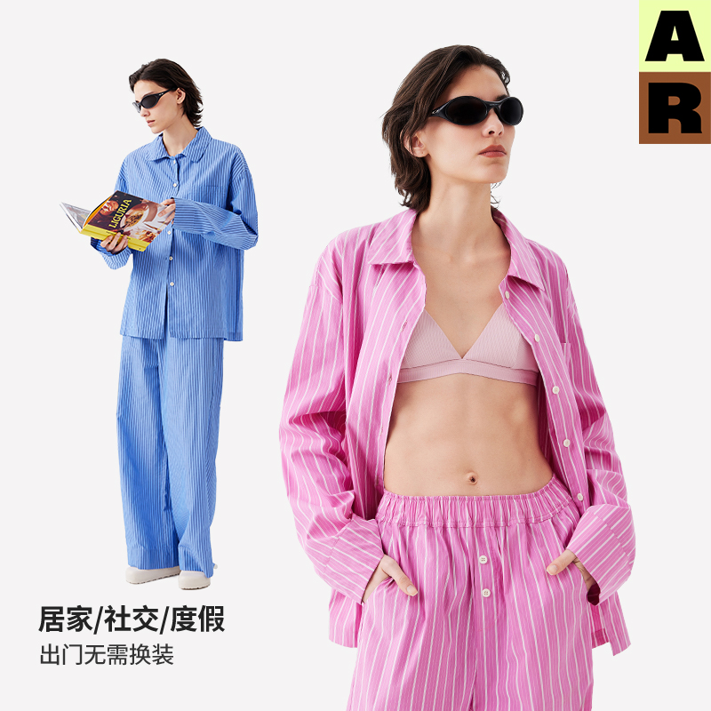 女r线AlmondRocks 睡衣长短裤 AR条纹可外穿家居服套装 2025春秋长袖