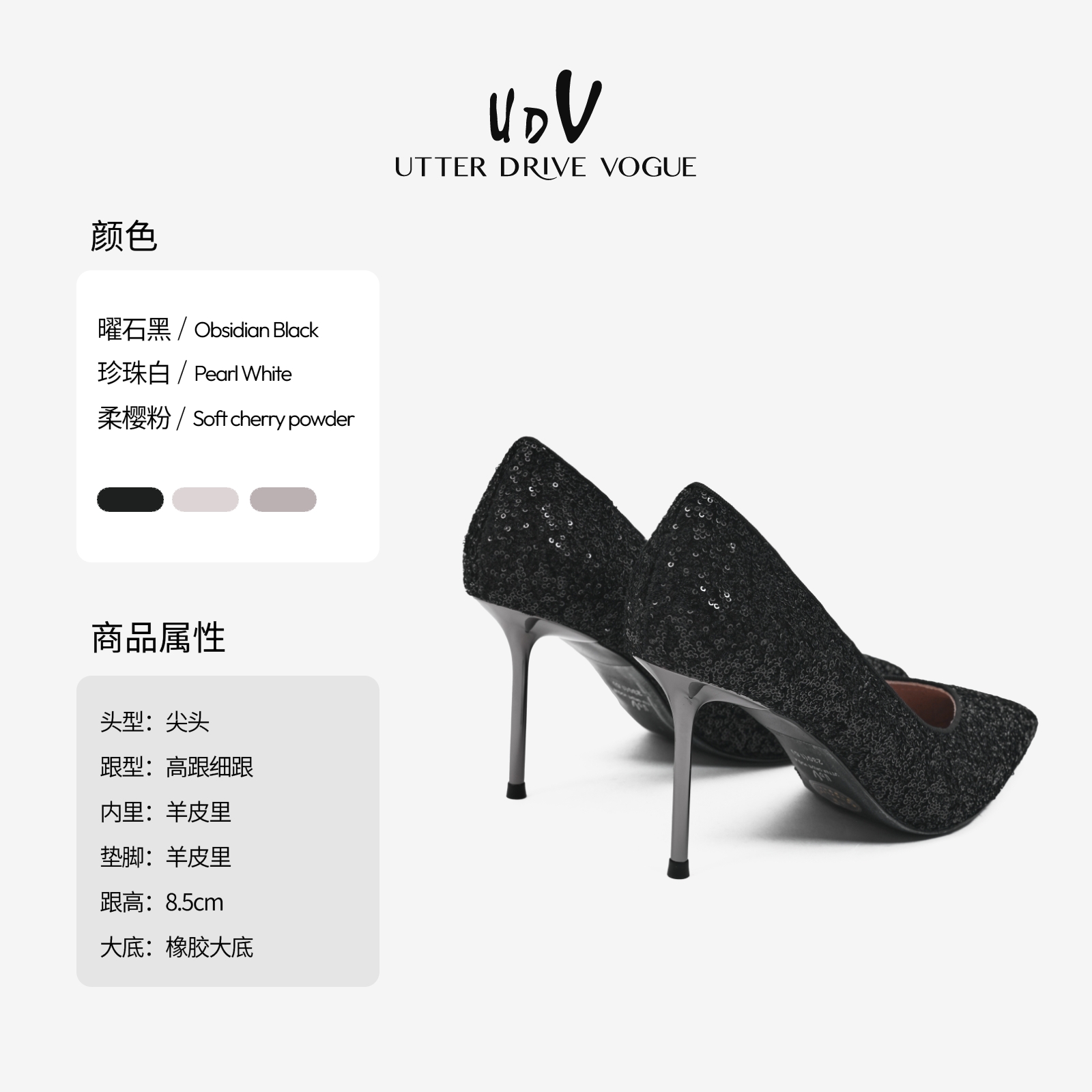 2025春季 亮片伴娘鞋 新款 秀禾法式 主婚纱婚鞋 UDV不累脚黑色高跟鞋