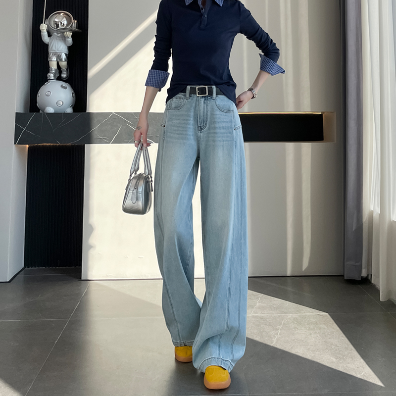 浅色显瘦垂感直筒拖地阔腿裤 女高腰2025春秋新款 子 香蕉牛仔裤 窄版
