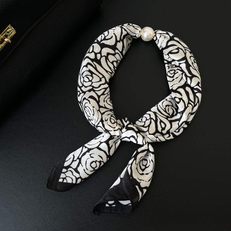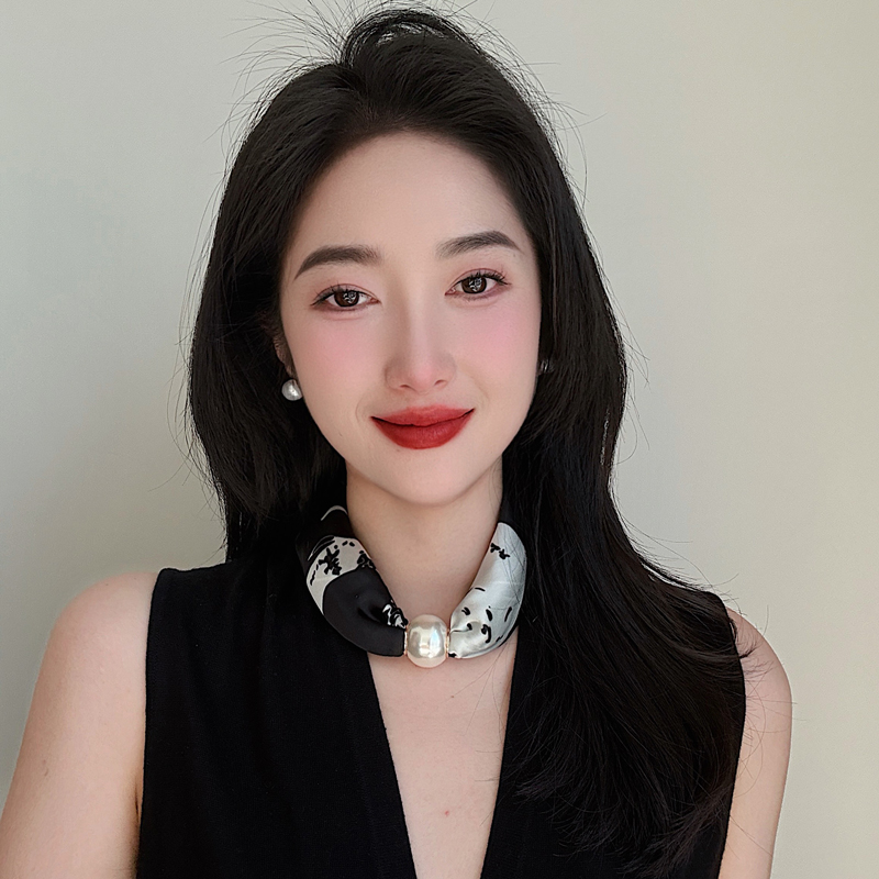 磁扣小丝巾女珍珠懒人护颈2025春夏新款 磁吸扣项链 领巾百搭配西装