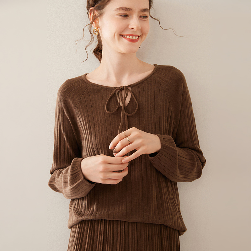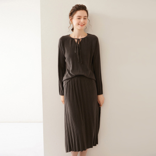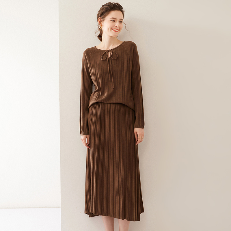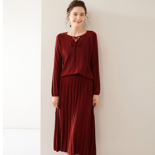 上衣女两件套宽松百褶半身裙套装 2025春夏新款 精纺桑蚕丝针织毛衫