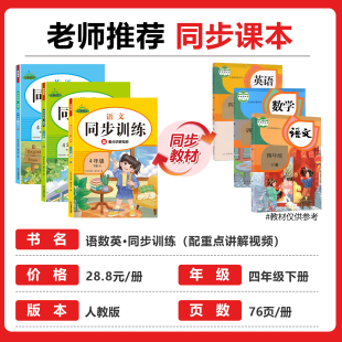 英语专项训练题2025小学课本教材一课一练老师推荐 四年级同步训练上册下册语文数学同步练习册全套人教版 每日一练 25年1月新版