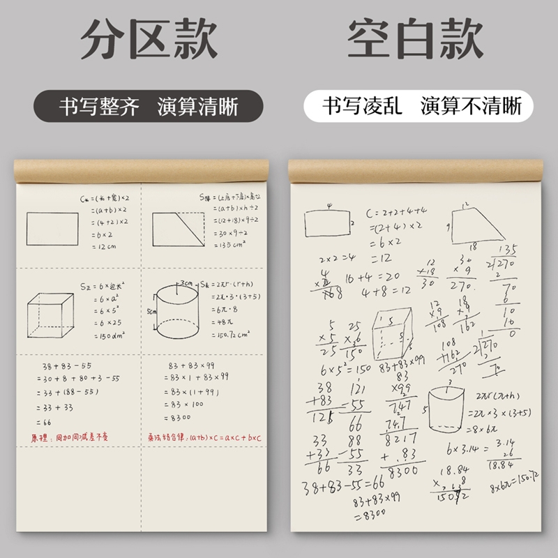 草稿纸草稿本小学生高中生考研专用分区加厚空白演草纸本子数学验算初中生文稿纸大学生用带撕线可撕白纸批发