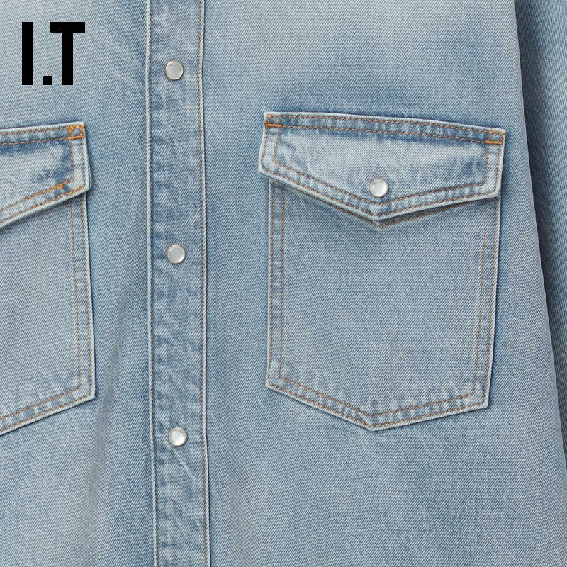 韩版 新款 宽松高级感小个子上衣 外套女慵懒风2025秋季 牛仔棉衬衫