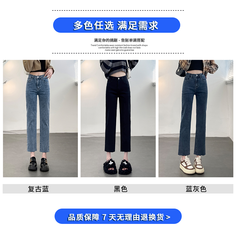 子 秋冬加绒高腰法棍小个子黑色直筒牛仔裤 烟管裤 女春秋2025年新款