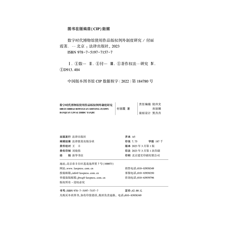付丽霞 权例外制度研究 中南财经政法大学青年学术文库 法律出版 9787519771577 2023新书 社 数字时代博物馆使用作品版
