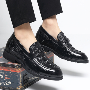 增高豆豆男鞋 牛皮商务正装 男意大利一脚蹬乐福鞋 老爷车鳄鱼纹皮鞋