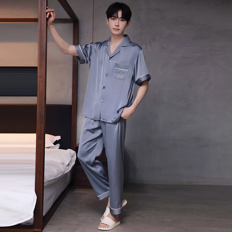 长裤 冰丝短袖 2025年新款 薄款 乐姿梦睡衣男士 丝绸家居服套装 春夏季