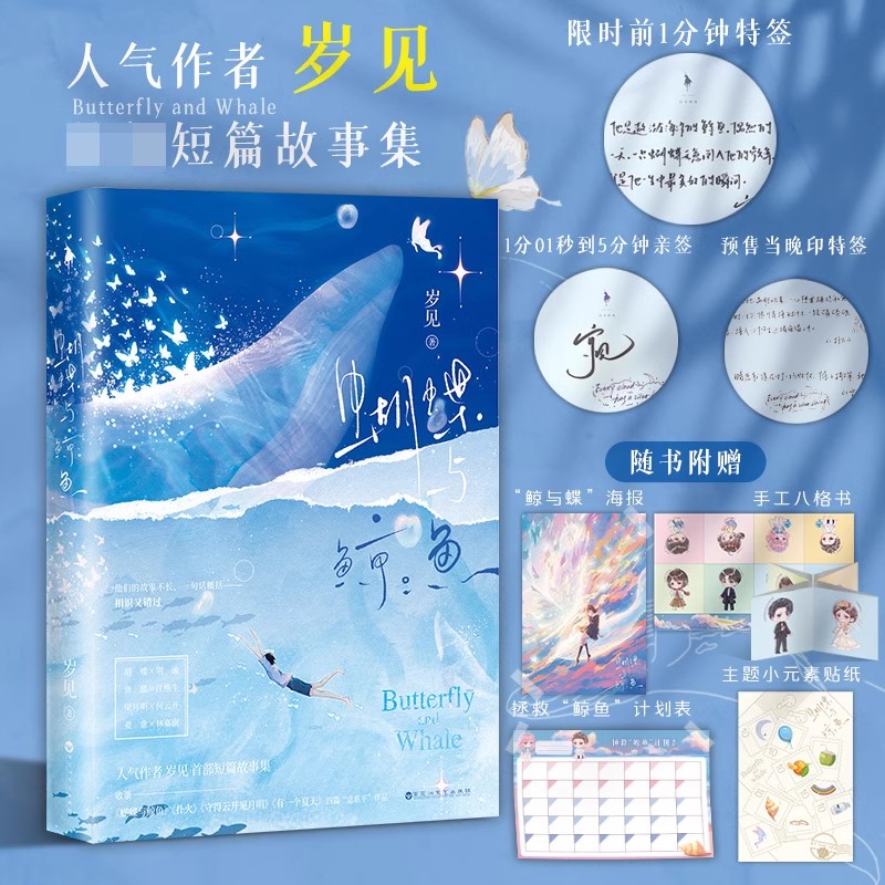 印特签版 蝴蝶与鲸鱼小说实体书岁见著青春言情小说畅销书籍4篇短篇故事集守得云开见月明胡蝶×荆逾收录扑火守得云开有一个夏天