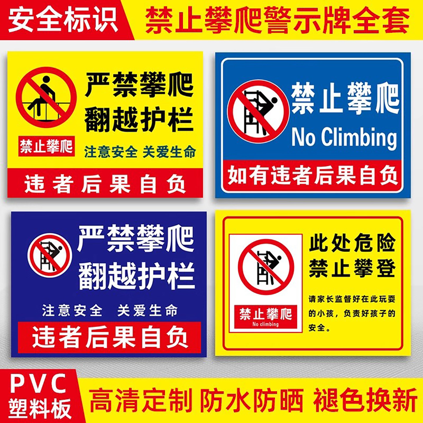 禁止攀爬标识牌挂牌抱箍严禁翻越护栏注意安全警示牌围栏栏杆禁止攀登警示标语提示牌违者后果自负警告标志牌