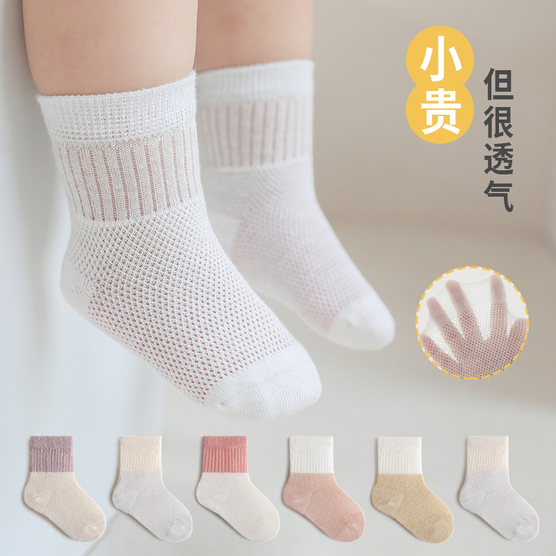 3月1岁 宝宝春秋纯棉网眼透气男女新生儿童无骨0 婴儿袜子夏季 薄款