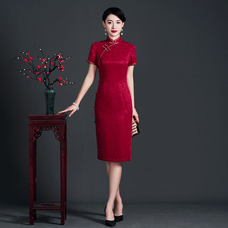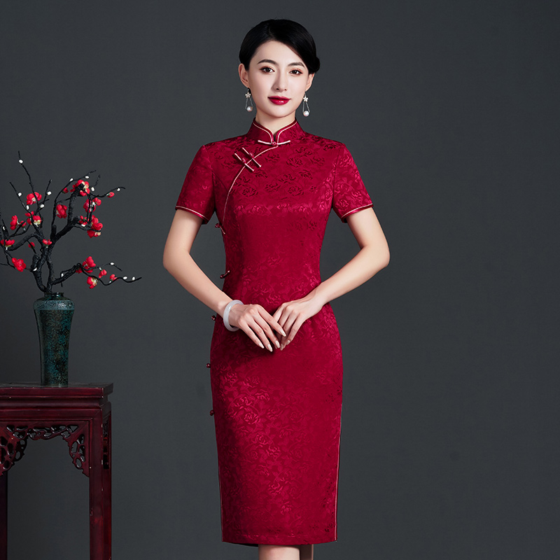 中式 MELINDA 博主同款 玲珑 冠乐绉提花桑蚕丝人丝旗袍连衣裙
