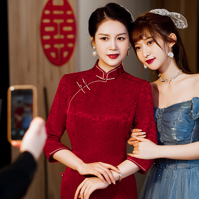 国风订婚敬酒礼服裙子 新中式 红色改良旗袍连衣裙女2025年秋季 新款