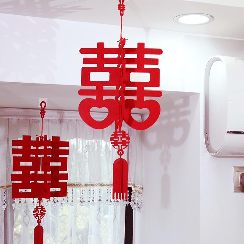 婚房装 扮客厅新房布置喜字 饰万字结挂饰结婚用品门把手婚礼卧室装
