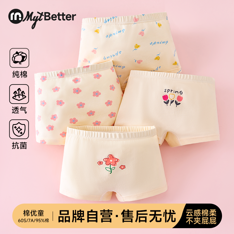 儿童全棉短裤 宝宝A类女宝四角大童新款 纯棉平角女孩秋季 女童内裤